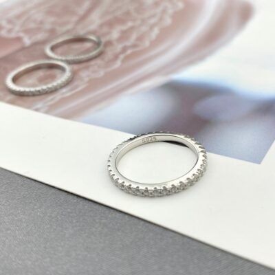 Nhẫn bạc sterling S925 xuyên biên giới nữ hơi thở của em bé màu zircon kim cương một hàng nhẫn nữ xếp chồng lên nhau đơn giản nhẫn ngoại thương