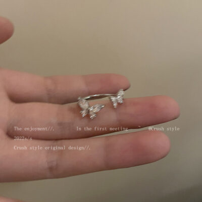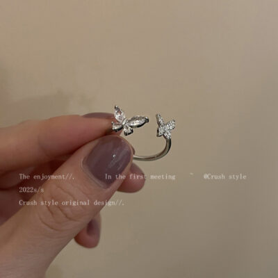 Nhẫn cao cấp khảm bướm kim cương hở nhẫn nữ ins thời trang cá tính ngón trỏ nhẫn nhẹ thiết kế sang trọng thích hợp nhẫn