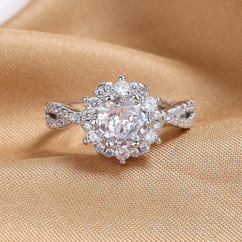 Nhẫn công chúa Aisha nữ phát sóng trực tiếp gương chéo một carat hoa xoắn cánh tay nhẫn kim cương nhẫn cưới nhẫn moissanite tùy chỉnh