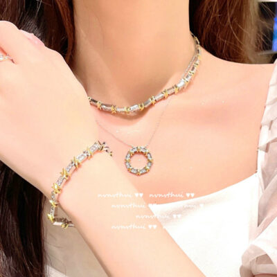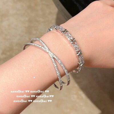 Nhẫn đá quý lồng vào nhau phát sáng rực rỡ Trái tim và Mũi tên mạ vàng 18K zircon flash nhẫn kim cương vòng tay hoa thánh giá