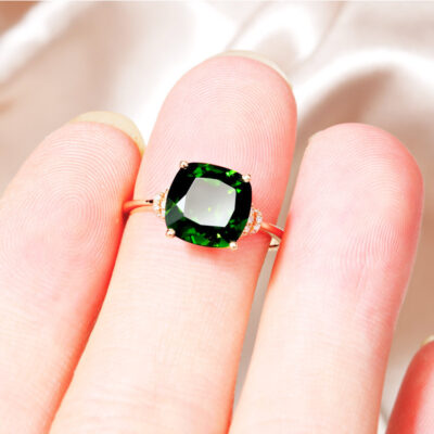 Nhẫn đá quý ngọc lục bảo mạ vàng hồng 18K bầu không khí đơn giản nhúng pha lê tourmaline xanh nhẫn trang sức nữ