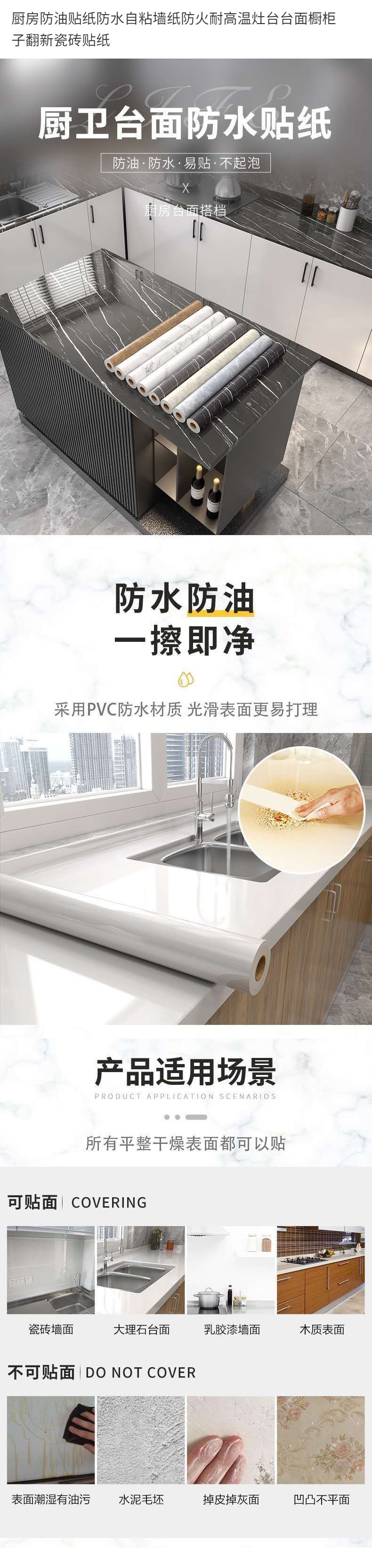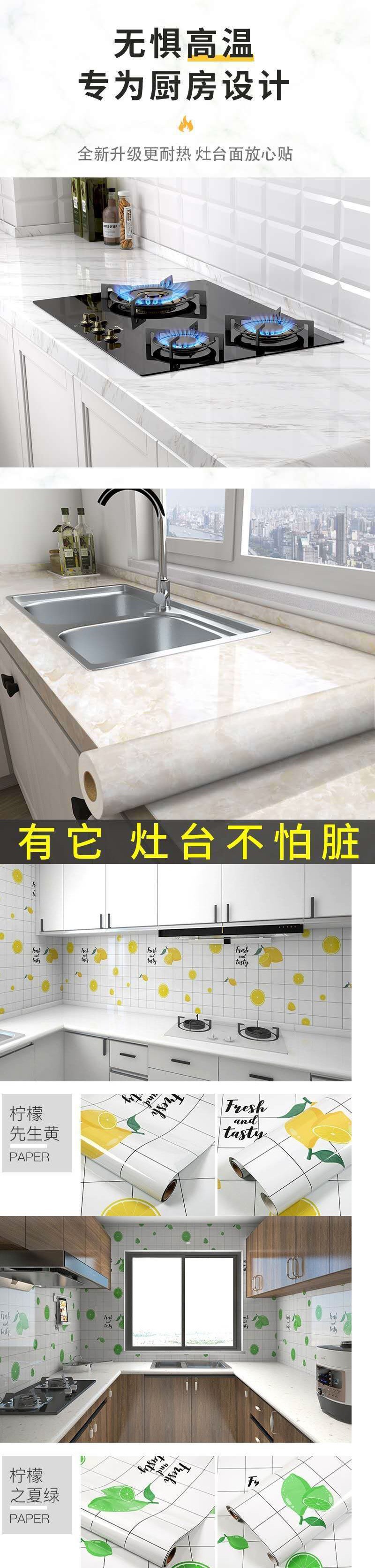 Nhãn dán chống khói nhà bếp giấy dán tường tự dính chống cháy mặt bàn bếp tân trang tủ gạch thế hệ nhà sản xuất xuyên biên giới
