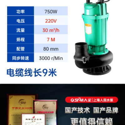 Nhân Dân Thượng Hải Máy Bơm Nước Máy Bơm Chìm 220V380V Máy Bơm Nước Sạch Tưới Tiêu Nông Nghiệp Cao Nâng Lưu Lượng Lớn Máy Bơm Nước