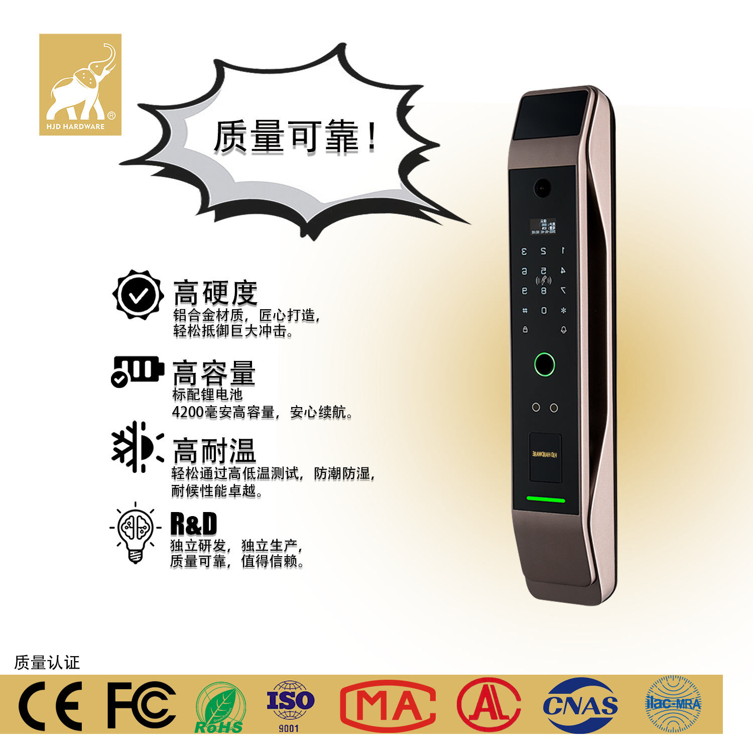 Dung lượng lưu trữ dấu vân tay: 75 Nhãn hiệu: HJD Tuổi thọ: 10 Nguồn điện: AC Model: T12 Thời gian quét <: 0,3 Phạm vi ứng dụng: căn hộ, khách sạn, nhà ở, v.v. Thông số kỹ thuật: phiên bản cơ bản/phiên bản mắt mèo/khuôn mặt 3D+mắt mèo /Khuôn mặt 3D +Tỷ lệ nhận dạng sai của Maoyan<:0,008 Giao hàng tận nơi: Giao hàng tận nơi Có cung cấp dịch vụ lắp đặt hay không: Không Phương pháp so sánh: 1:N Nhiệt độ làm việc: -25~60 Độ ẩm làm việc: 15~95 Tùy biến xử lý: Có Tỷ lệ từ chối <:0,005 Phong cách: Hiện đại Phong cách đơn giản: Vân tay/Không thấm nước/Mật khẩu/Có phím/Lỗ nhìn trộm trực quan/Nhận dạng khuôn mặt/Mở khóa từ xa/Khác/Số lần mở khóa khác>: 100000
