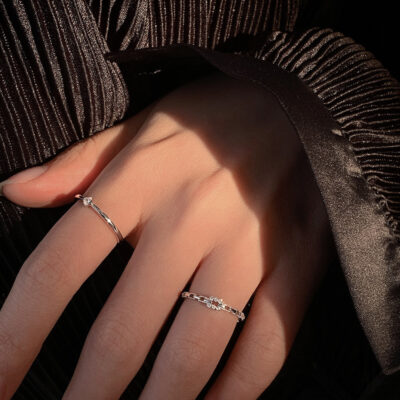 Nhẫn dây chuyền kim cương hình vuông thời trang nữ Nhẫn zircon khảm siêu nhỏ phiên bản Hàn Quốc thiết kế thích hợp cho độ mở của ngón trỏ có thể điều chỉnh