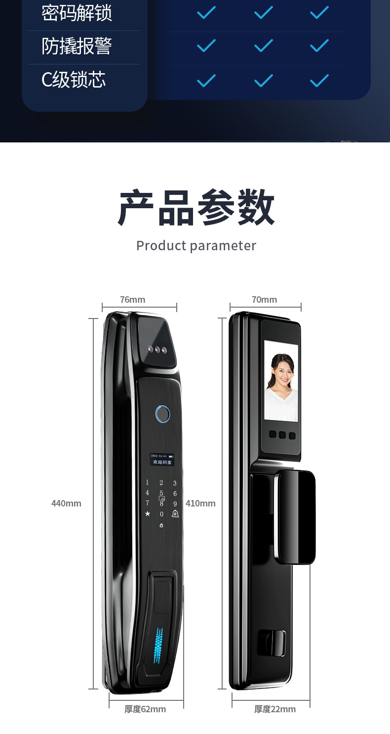Nhận diện khuôn mặt khóa vân tay khóa thông minh khóa cửa thông minh tự động khóa điện tử tổ hợp khóa hộ gia đình bán buôn cửa ra vào