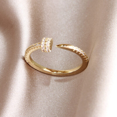 Nhẫn đính đá siêu nhỏ đính đá zircon móng tay mở nhẫn cá tính cao cấp dành cho nữ hốc thiết kế đa năng Đẹp vòng lưới sang trọng màu đỏ
