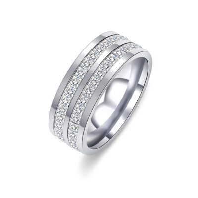 Nhẫn đôi hình vuông bằng thép titan khảm siêu nhỏ sang trọng một hàng Gypsophila Nhẫn đôi ngón trỏ bằng thép titan