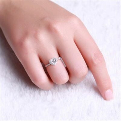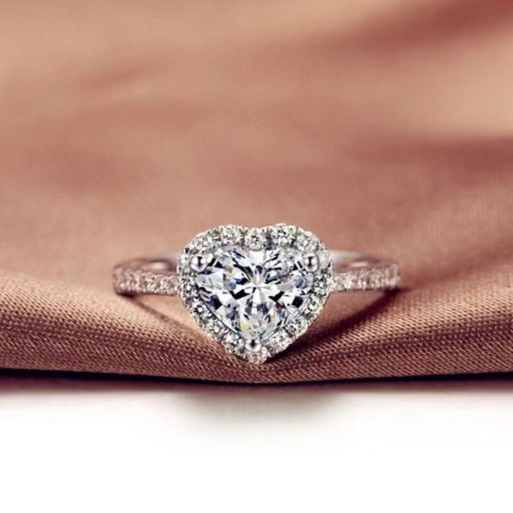 Nhẫn giả Moissanite hình trái tim nữ thời trang Âu Mỹ xu hướng nhẫn kim cương tình yêu tinh tế vi khảm trang sức bùng nổ online