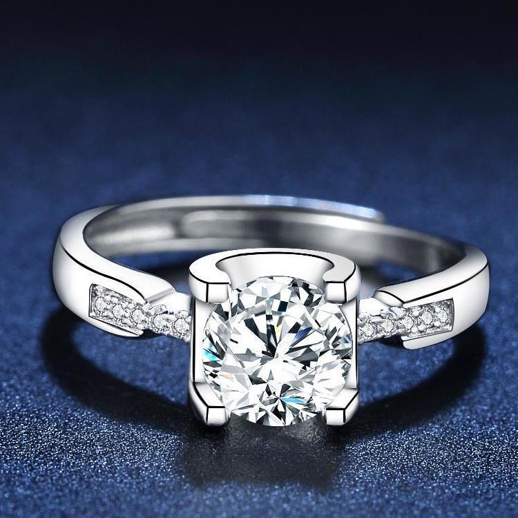 Nhẫn kim cương đầu bò eo nhỏ nhẫn cưới nữ 1 carat S925 bạc đặt hàng nhẫn cưới đạo cụ đám cưới nhẫn nữ