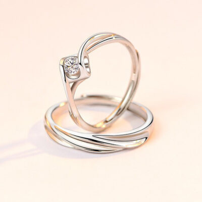 Nhẫn kim cương hình trái tim nụ hôn thiên thần Nhẫn cặp đôi Nhật Bản và Hàn Quốc nhẫn nữ khảm bạc S925 nhẫn mở nhẫn đôi nhẫn đôi