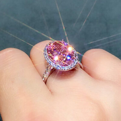 Nhẫn kim cương màu bột zircon hình quả trứng khảm siêu nhỏ xuyên biên giới Những người nổi tiếng Âu Mỹ Khí chất sang trọng Nhẫn kim cương hình quả trứng lớn cho nữ