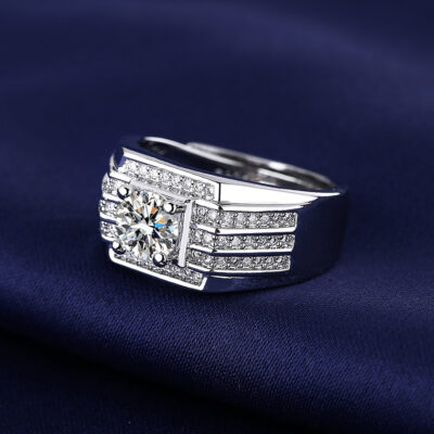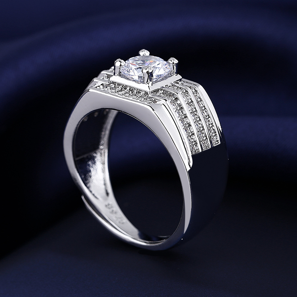 Nhẫn kim cương Moissanite trực tiếp cho nam Nhẫn cưới kim cương 1 carat hợp thời trang Nhẫn nam mạ bạch kim kim cương lớn độc đoán Nhẫn nam Moissanite