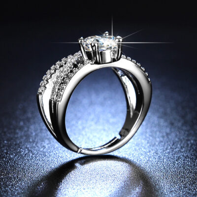 Nhẫn mới xuyên biên giới Phiên bản Nhật Bản và Hàn Quốc uốn lượn chéo Sansei Sansei một carat nhẫn giả kim cương giả moissanite bán buôn