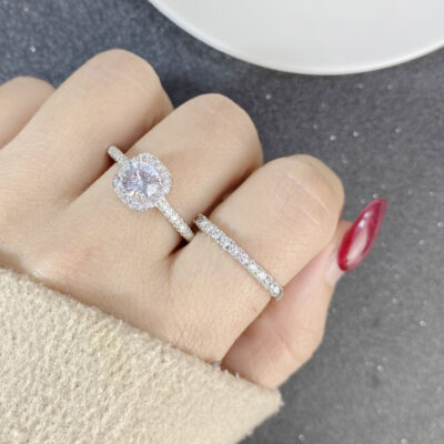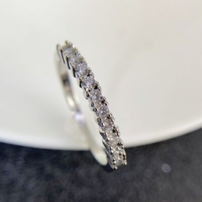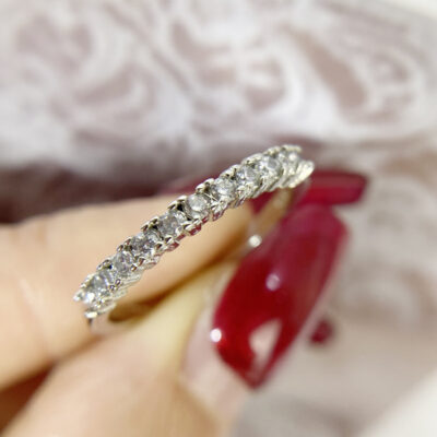 Nhẫn nữ một hàng phiên bản Hàn Quốc giả mạ bạc Moissanite đầy kim cương Nhẫn đính đá zirconium siêu nhỏ sáng bóng phù hợp với đuôi mở đơn giản của nữ