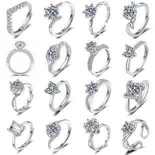Nhẫn sáu móng nạm kim cương dành cho nữ đính kim cương đầy đủ zircon mở nhẫn cưới nguồn trực tiếp một carat mô phỏng nhẫn kim cương moissanite