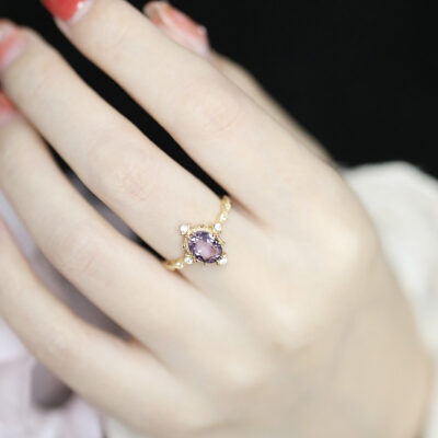 Nhẫn thạch anh tím vương miện nhỏ bán chạy nhất của phụ nữ Đẹp kiểu Pháp sang trọng phong cách cung điện bạc sterling bạc khảm chim bồ câu nhẫn kim cương