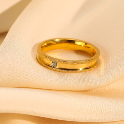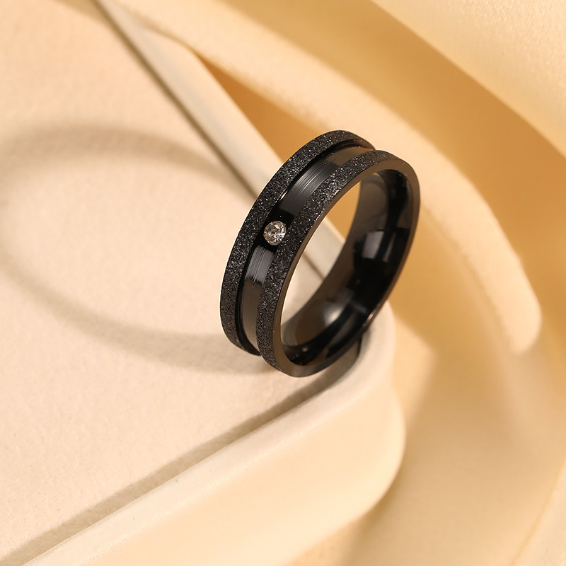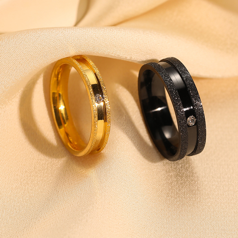 Nhẫn thép không gỉ châu Âu và Mỹ nhẫn đôi nhẫn đôi nhẫn thép titan đính kim cương thích hợp nhẫn mờ thế hệ nữ