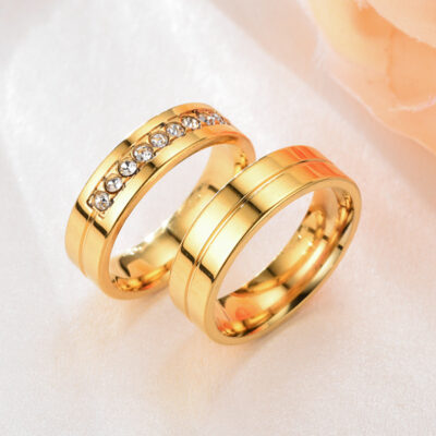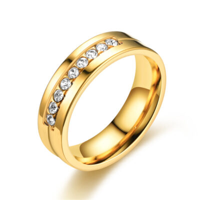 Nhẫn thép titan thời trang Âu Mỹ Nhẫn đôi nhẫn nam nữ một cặp nhẫn kim cương phong cách Nhật Bản và Hàn Quốc nhẫn vàng 6mm