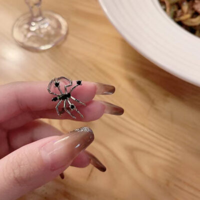Nhẫn tối màu dành cho người hâm mộ thích hợp thiết kế theo phong cách nhện nhẫn nữ cá tính hợp thời trang đá quý màu đen mát mẻ mở ngón tay trỏ nhẫn phong cách lạnh lùng