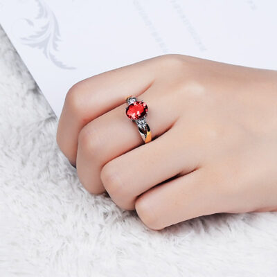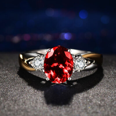 Nhẫn tourmaline đỏ hình bầu dục bốn móng Châu Âu và Mỹ mô phỏng sang trọng thấp nhẫn kim cương nữ tính khí cổ điển trang sức đơn giản bán buôn