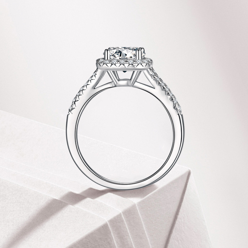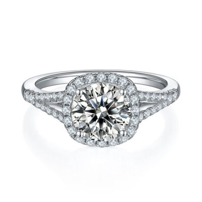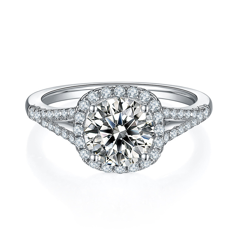 Nhẫn túi vuông khảm sang trọng hai carat cho nữ nhẫn đính kim cương bốn móng zircon mở nguồn trực tiếp mô phỏng nhẫn kim cương moissanite
