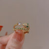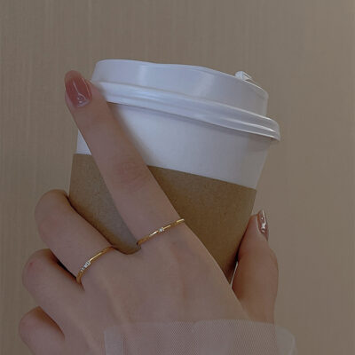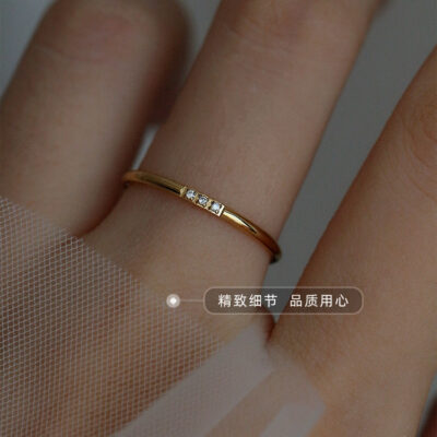 Nhẫn vàng nữ ins phong cách Đẹp sang trọng thiết kế thích hợp cảm giác dòng mỏng viên kim cương nhỏ tinh tế ngón trỏ đốt ngón tay nhẫn bán buôn