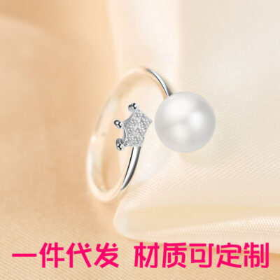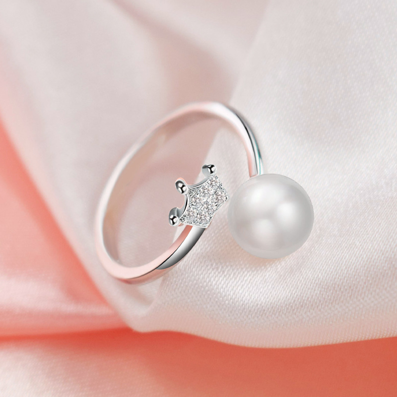 Nhẫn vương miện khảm đá zircon sống miệng vương miện nhẫn kim cương giả nhẫn ngọc trai thời trang khí chất cô gái quà tặng nhà máy bán buôn