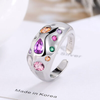 Nhẫn zircon màu sắc nữ Âu Mỹ khí chất đơn giản đám đông nhỏ ánh sáng sang trọng thiết kế nhẫn mở bán buôn