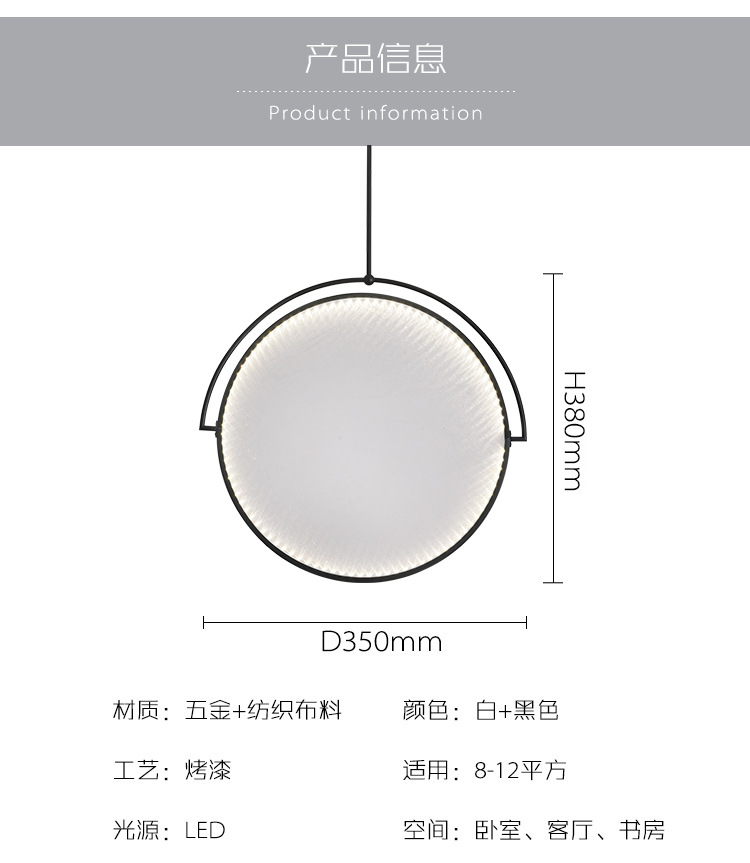适用面积提示:小号直径35CM:12瓦,5~8平方,餐厅或岛台建议用2只效果更好,可联系客服单独 购买长条顶盘