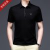 Nhập khẩu Ý Áo thun tay ngắn Armani nam lụa dâu tằm cao cấp ve áo công sở bình thường nam giới trung niên