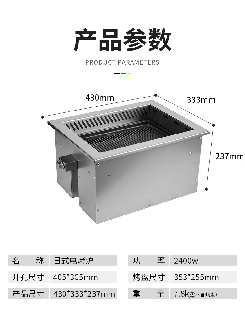 日式电烤炉方形烤肉锅2400W发热管不锈钢电烧烤炉烧肉连锁店专用