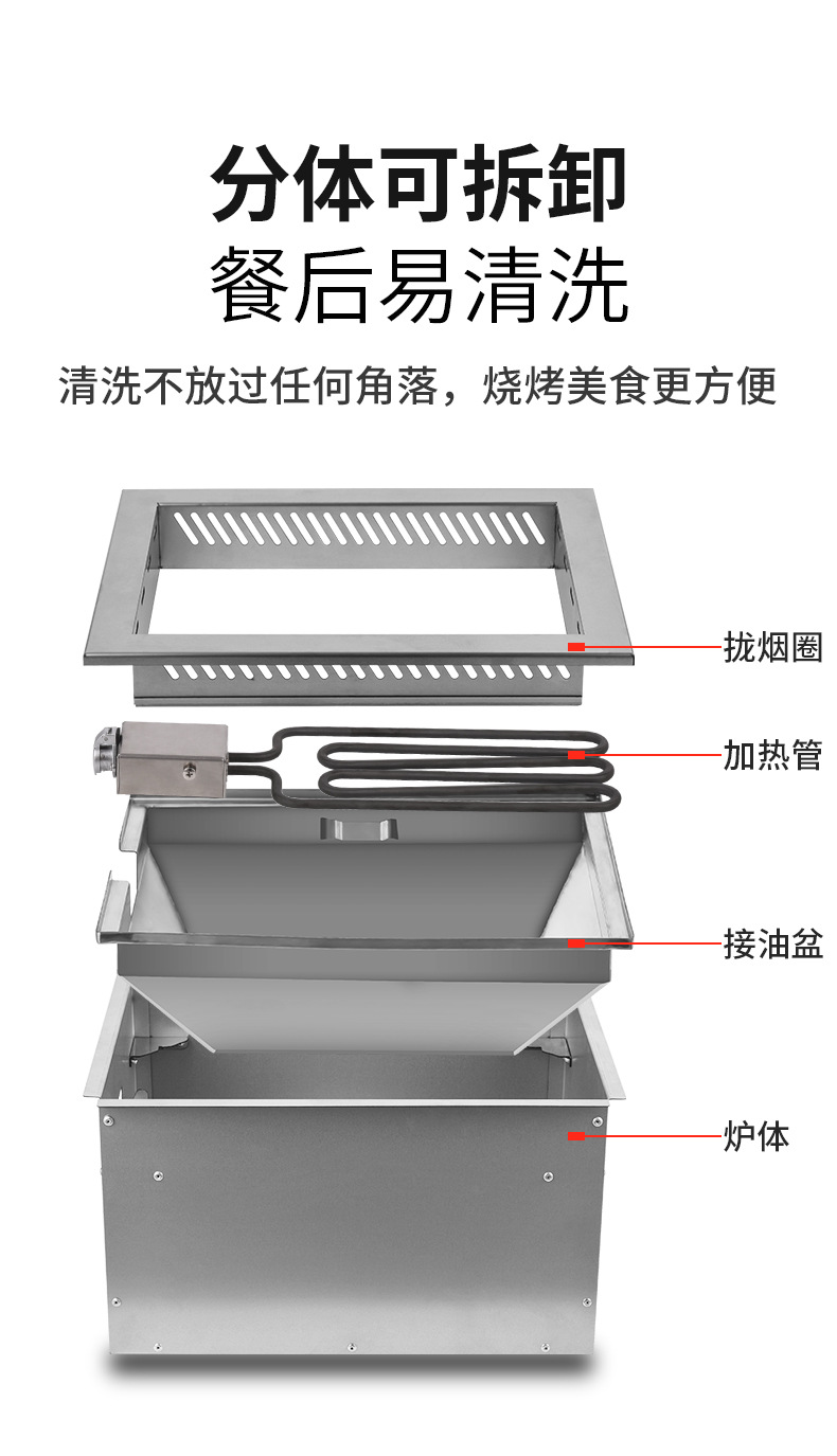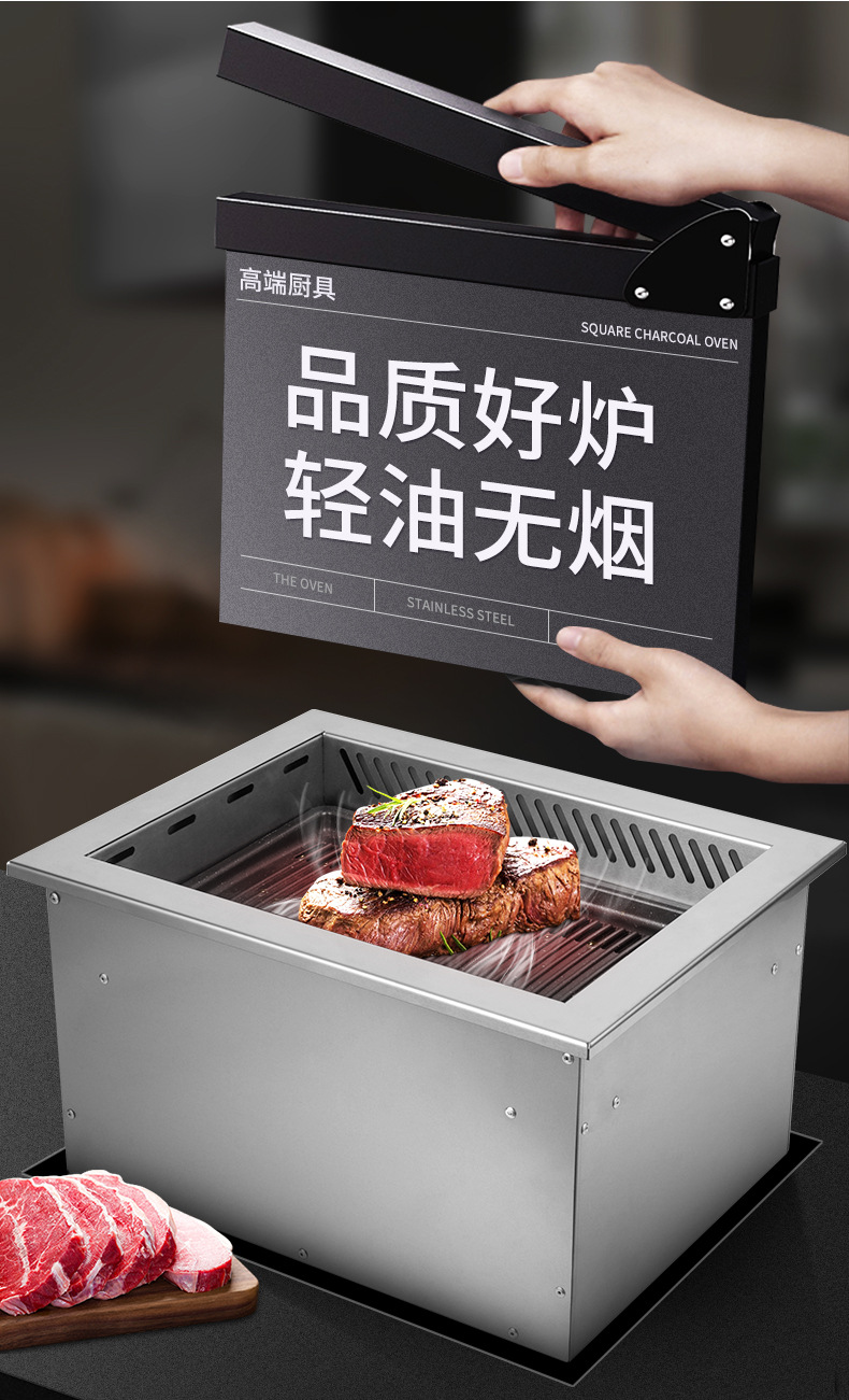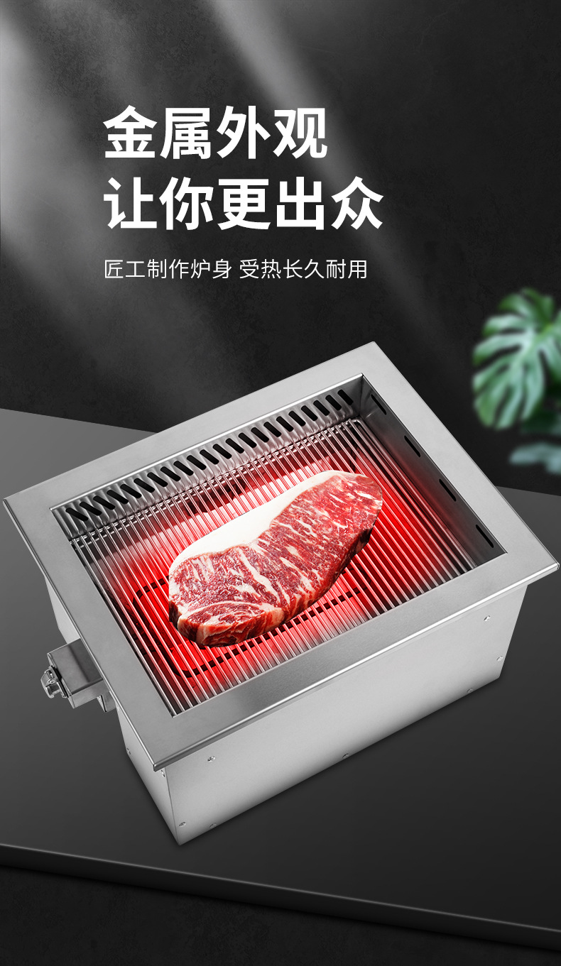日式电烤炉方形烤肉锅2400W发热管不锈钢电烧烤炉烧肉连锁店专用