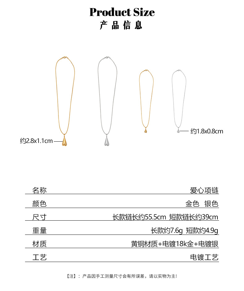Nơi xuất xứ: Thanh Đảo Quy trình xử lý: Mạ điện Thương hiệu: Khác Mã số: DS20230706KNM Màu sắc: Vàng ngắn 39cm/Dài vàng 55cm/Ngắn bạc 39cm/Dài bạc 55cm/Dài bạc 55cm Phân loại phong cách: Tươi mát và ngọt ngào Đa lớp: Không Đối tượng áp dụng: Phụ nữ Các nền tảng hạ nguồn chính: Taobao/PDD/Kuaishou/Tmall/Pinduoduo/Douyin/Douyin có thương hiệu riêng được ủy quyền: Không Chất liệu mặt dây chuyền: Đồng thau mạ vàng/mạ bạc Kiểu dây chuyền: Xương rắn Chất liệu dây chuyền: Đồng Năm/Mùa: Mùa thu 2023 Hình dạng: Hình trái tim Yếu tố phổ biến: Tình yêu/Hình trái tim Phong cách: Nhật Bản và Hàn Quốc Chu vi: 51cm (bao gồm)-60cm (bao gồm) Phân loại yếu tố phổ biến: Hình dạng/Hoa văn
