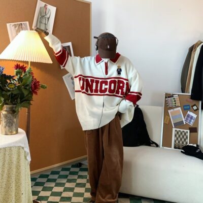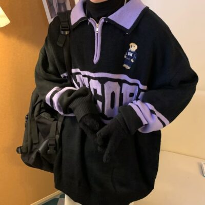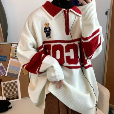 Nhật Bản Retro Chữ Cổ Polo Nửa Dây Kéo Áo Len Dệt Kim Nam Rời Thu Đông BF Gió Top Áo Khoác Chui Đầu