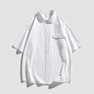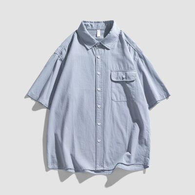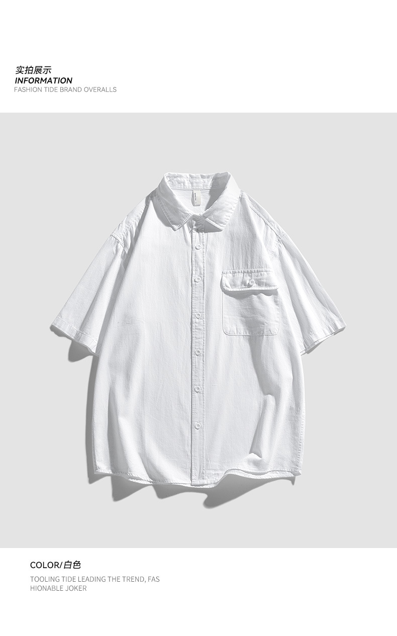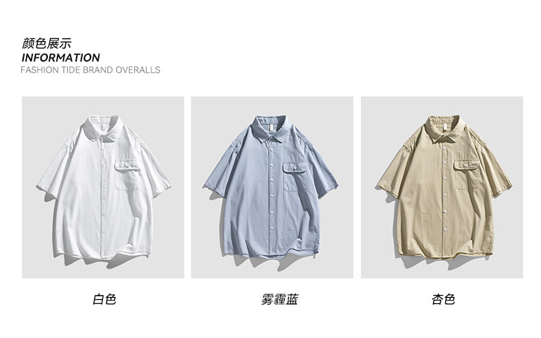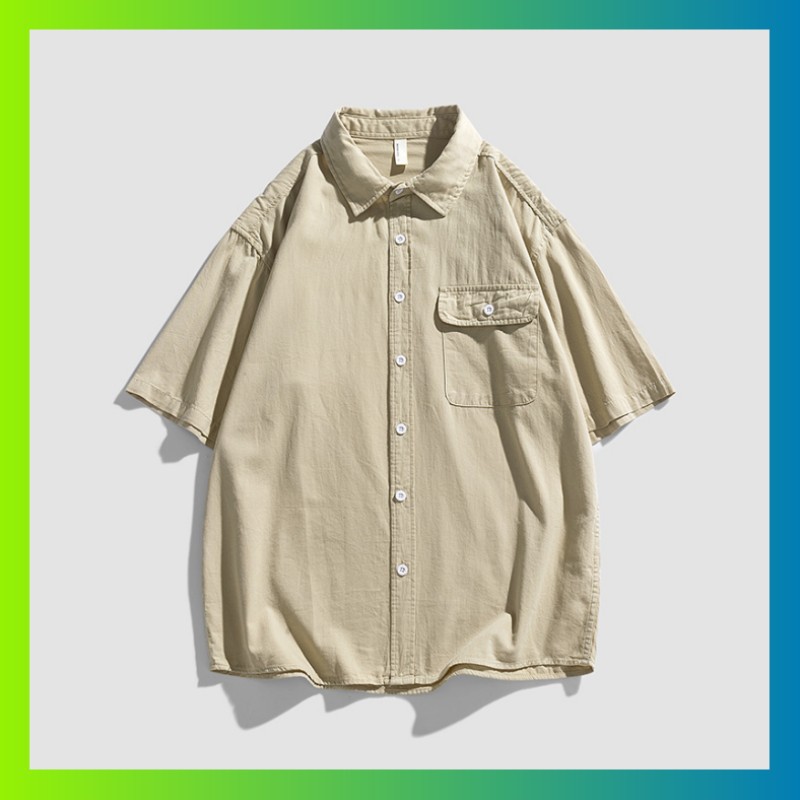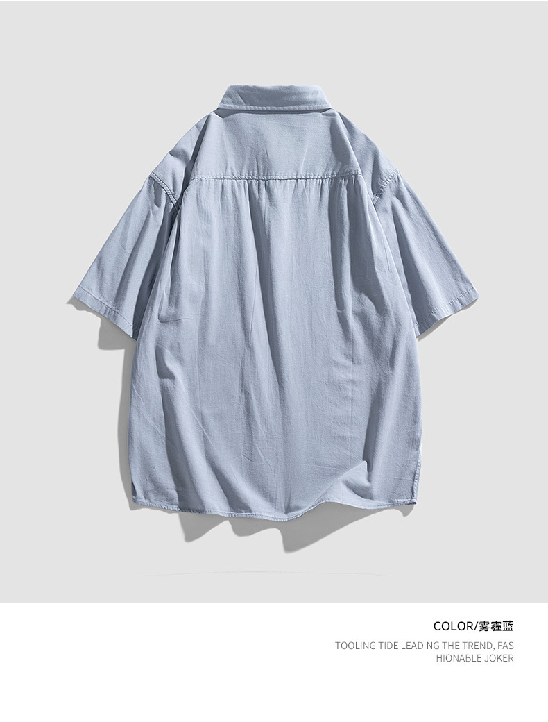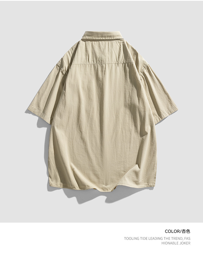 Nhật Bản Retro Dụng Cụ Áo Sơ Mi Nam Mùa Hè Túi Mới Rời Ve Áo Áo Sơ Mi Sơ Mi Tay Lửng Mùa Hè