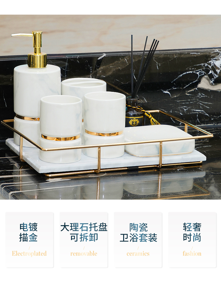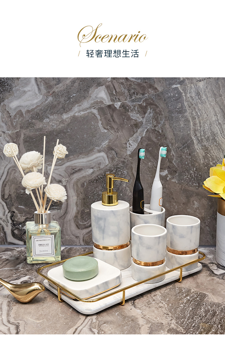 Nhẹ nhàng sang trọng gia dụng nước súc miệng cốc bộ rửa cốc xi lanh phòng tắm phòng tắm cung cấp đồ dùng đánh răng sứ nhà vệ sinh phong cách Châu Âu