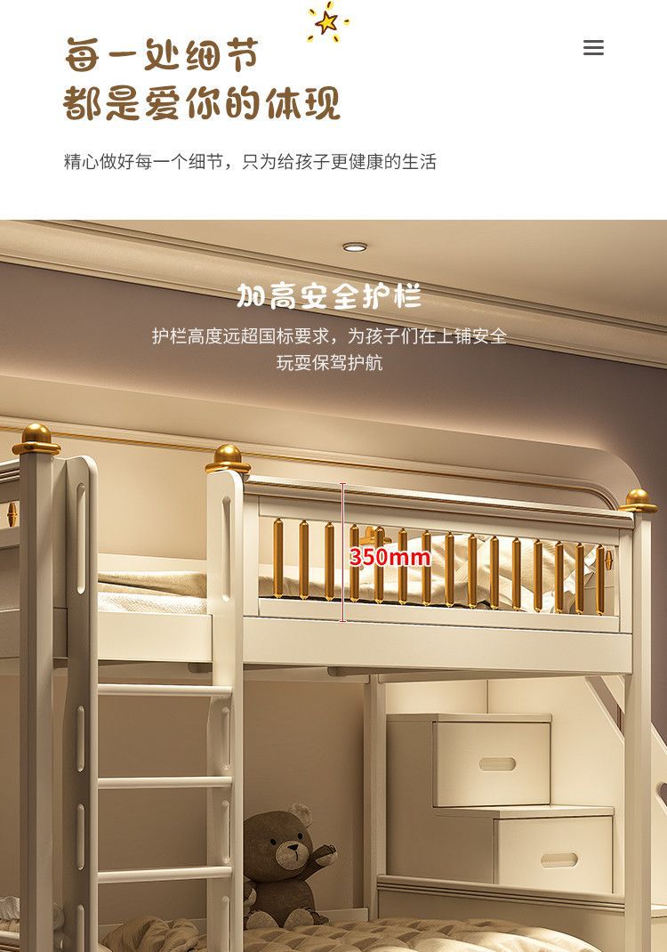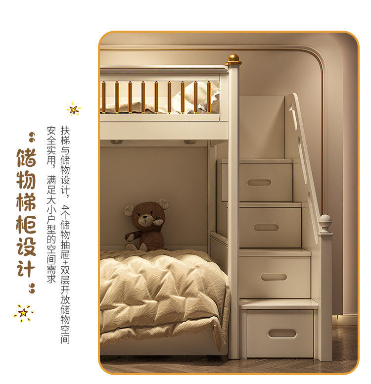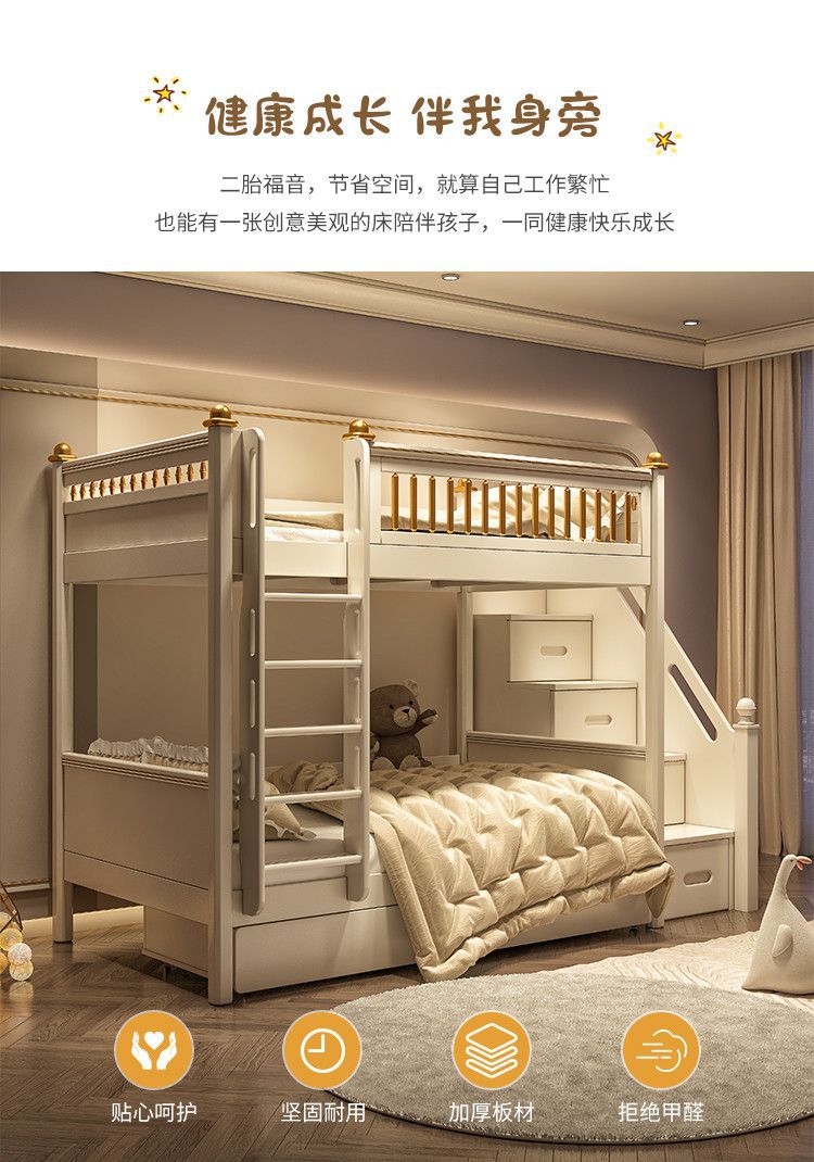 Nhẹ nhàng sang trọng Giường cao thấp bé trai kiểu Mỹ Giường tầng mẹ chồng Giường tầng 2 tầng hiện đại đơn giản