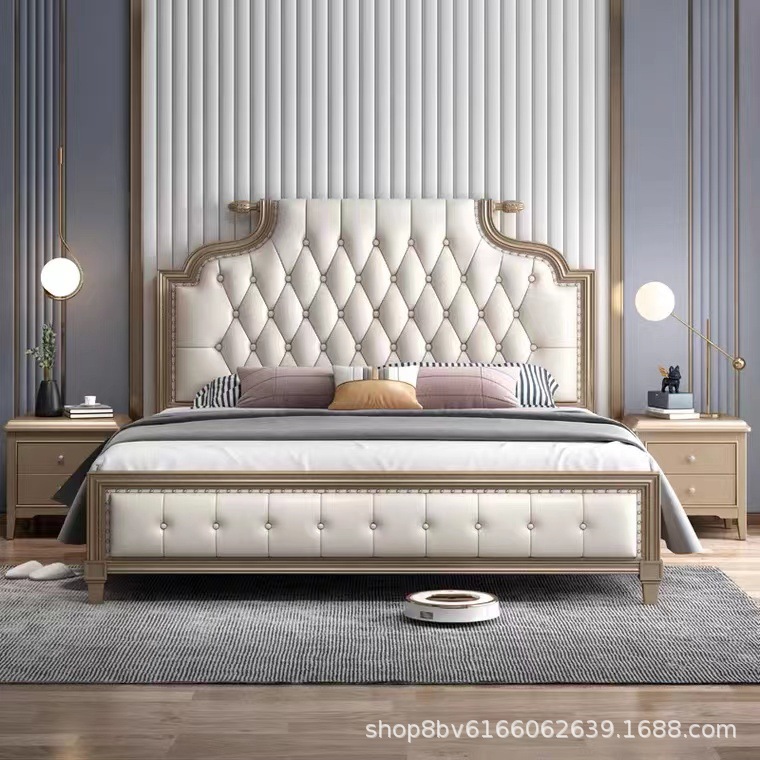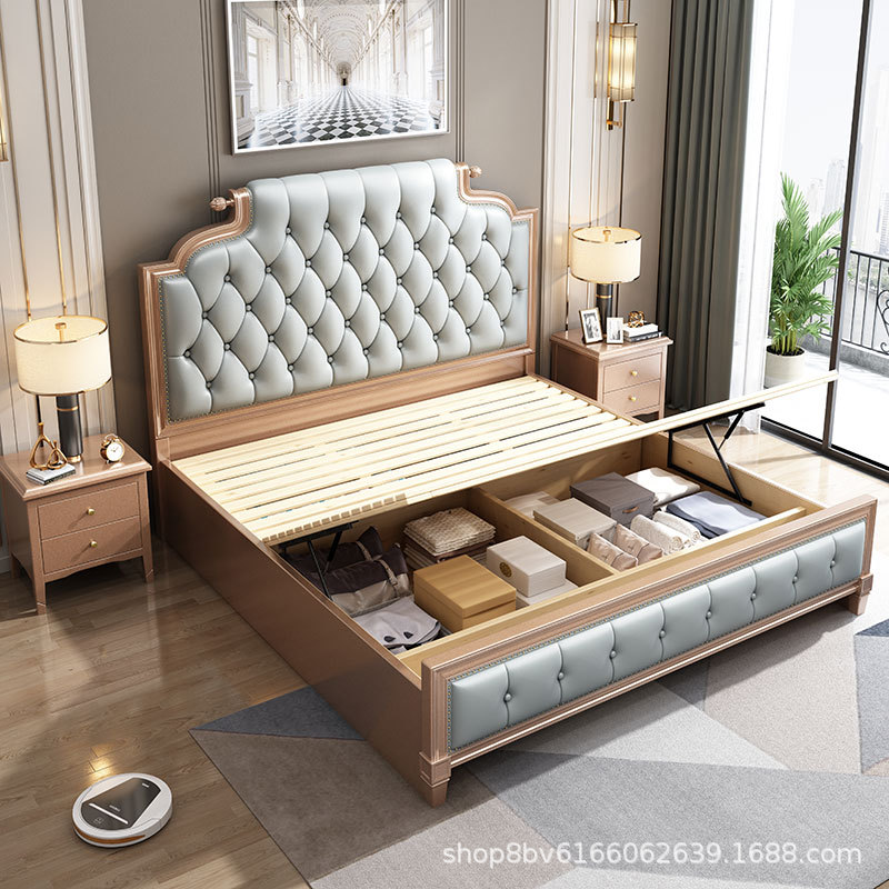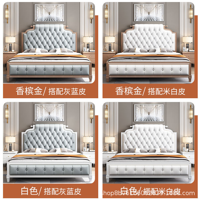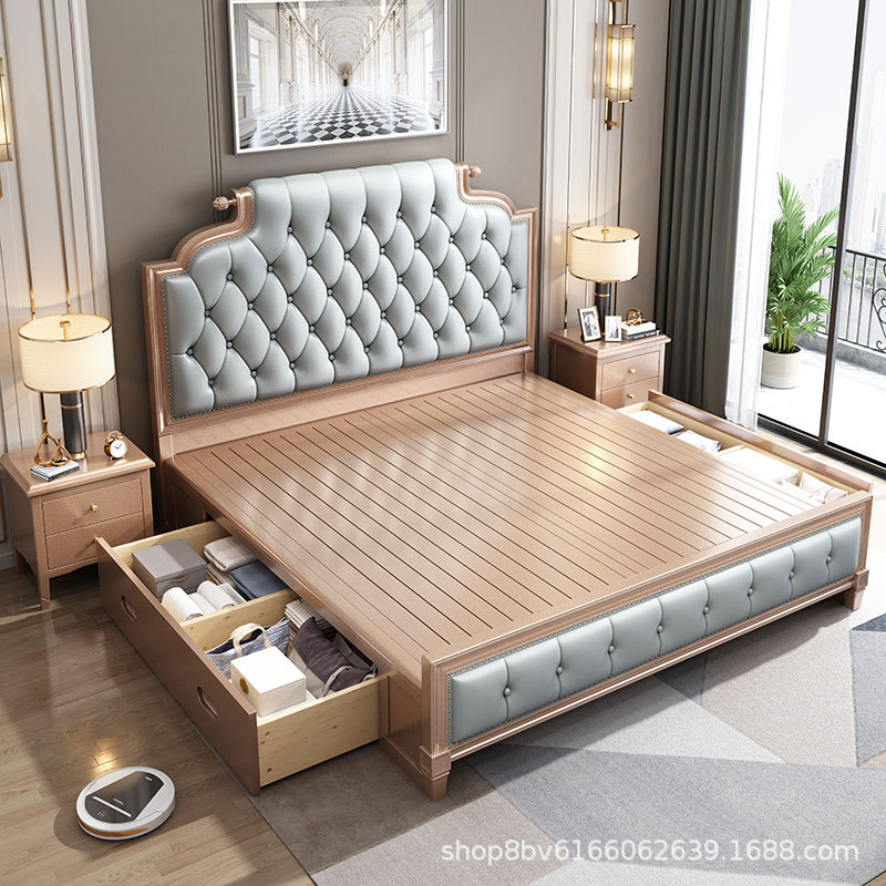 Nhẹ nhàng sang trọng Giường gỗ nguyên khối của Mỹ Giường tối giản hiện đại Giường đôi 1,8m Phòng ngủ chính Giường lớn 1,5m Gói mềm lưu trữ Giường cưới