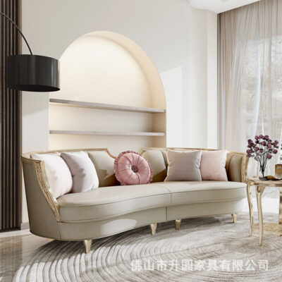 Nhẹ nhàng sang trọng sofa gỗ nguyên khối phòng khách kết hợp sofa vải gỗ nguyên khối Mỹ cung tròn phong cách châu Âu sofa căn hộ lớn bằng da