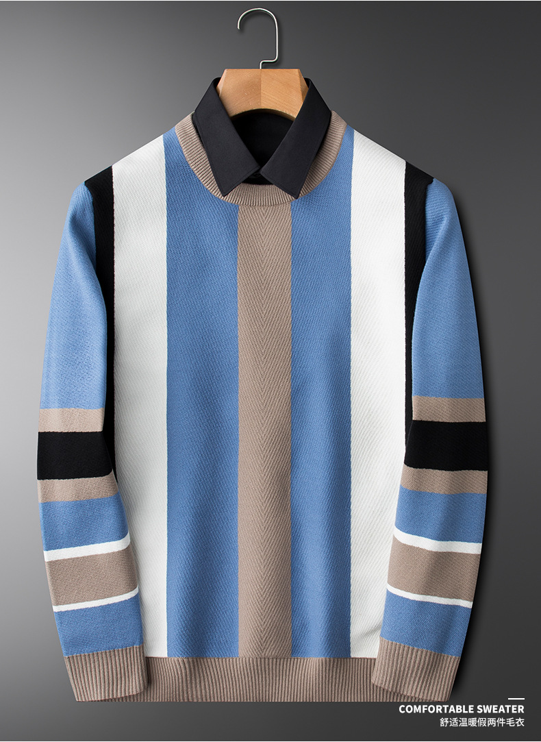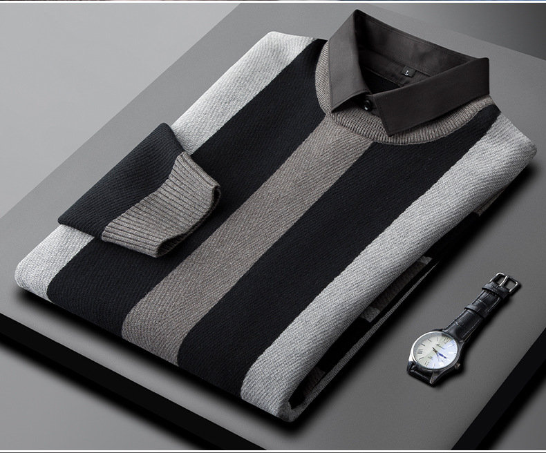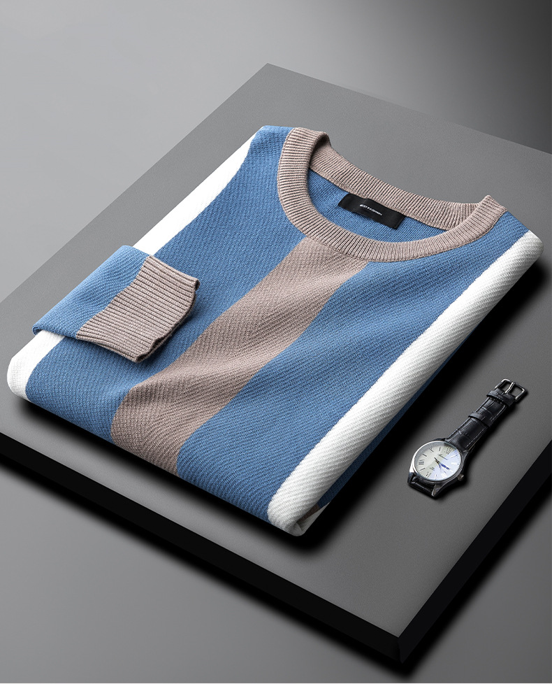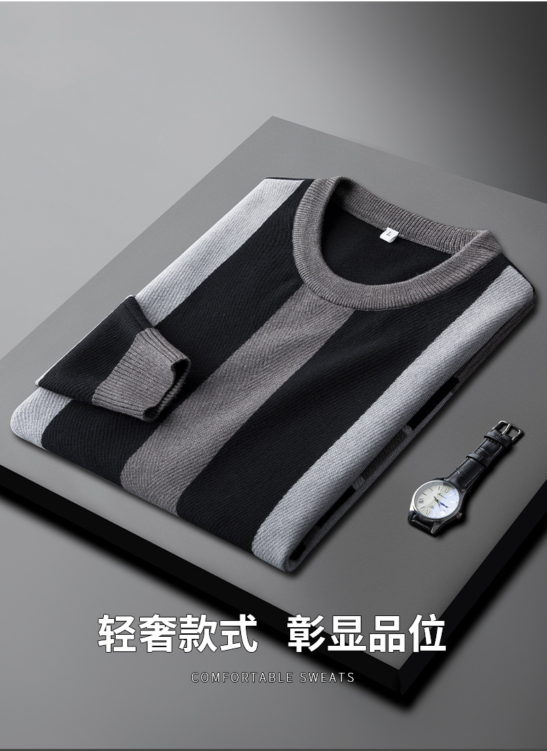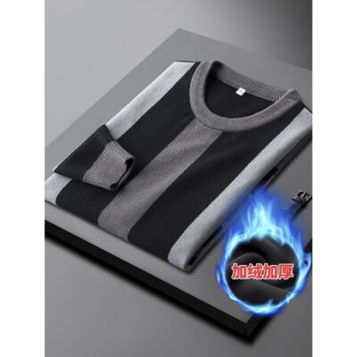 Nhẹ sang trọng cao cấp dày ấm áo len nam dài tay cổ tròn thu đông tự tu luyện thanh niên đáy sơ mi dệt kim xu hướng
