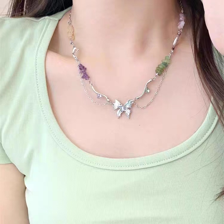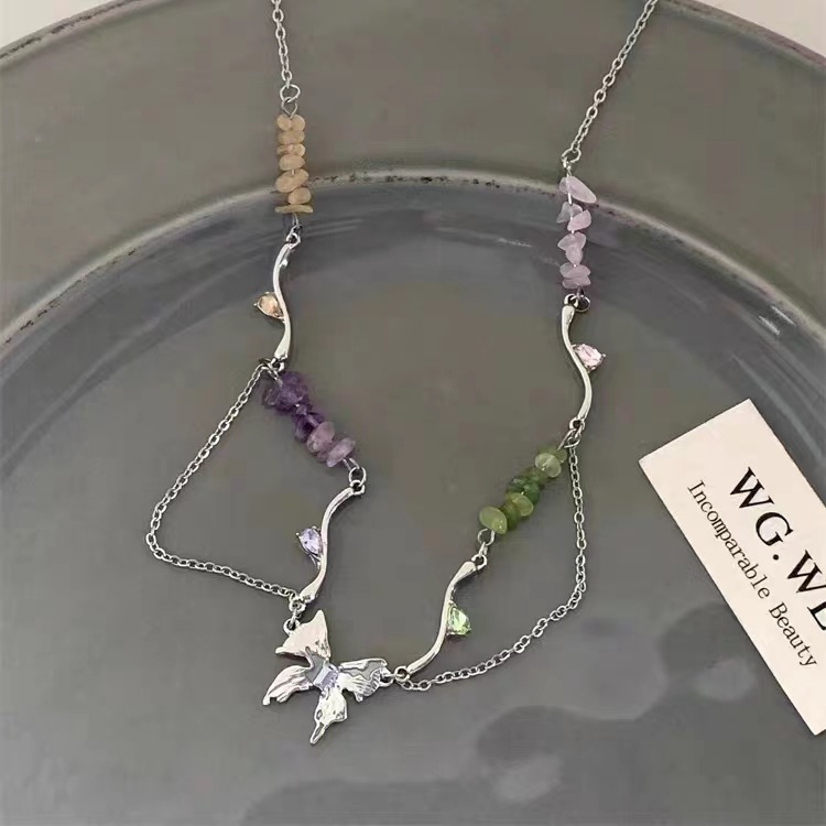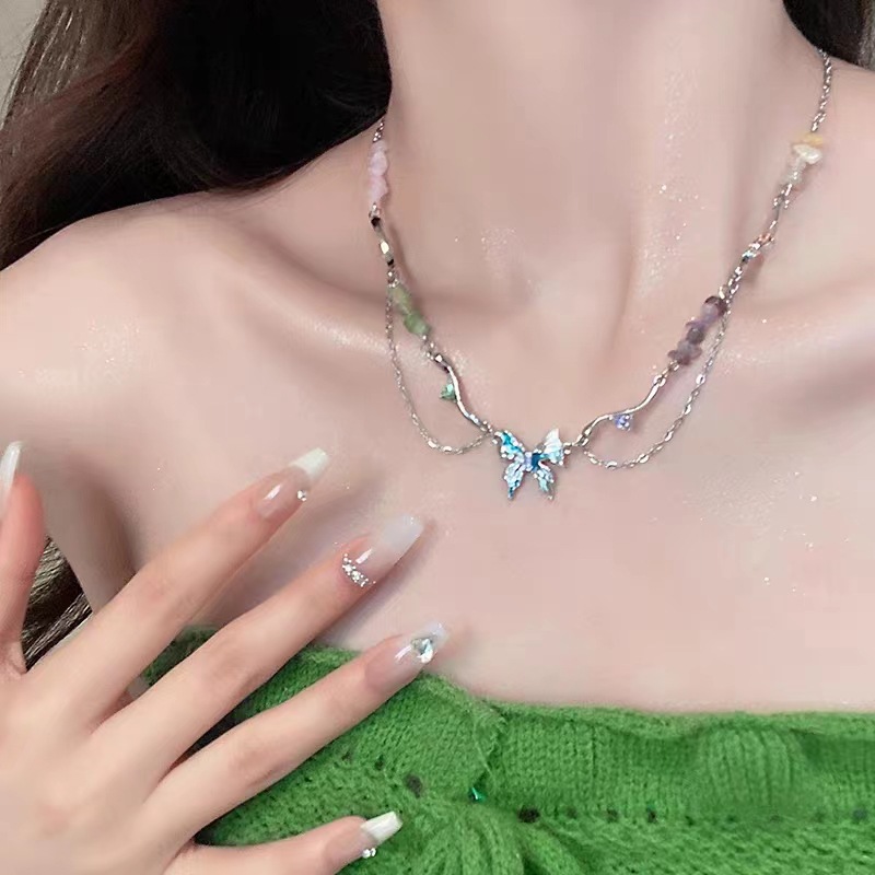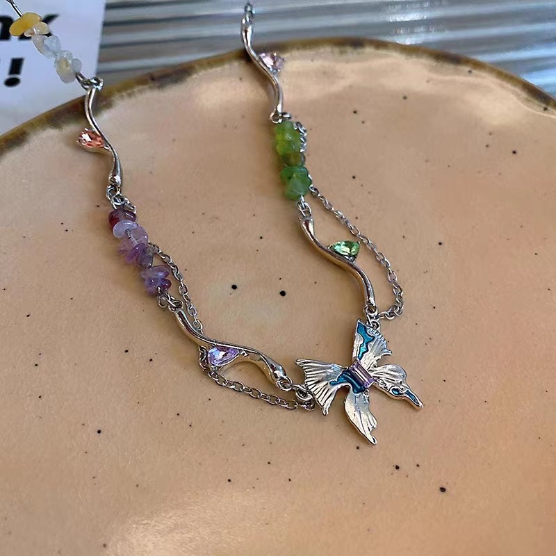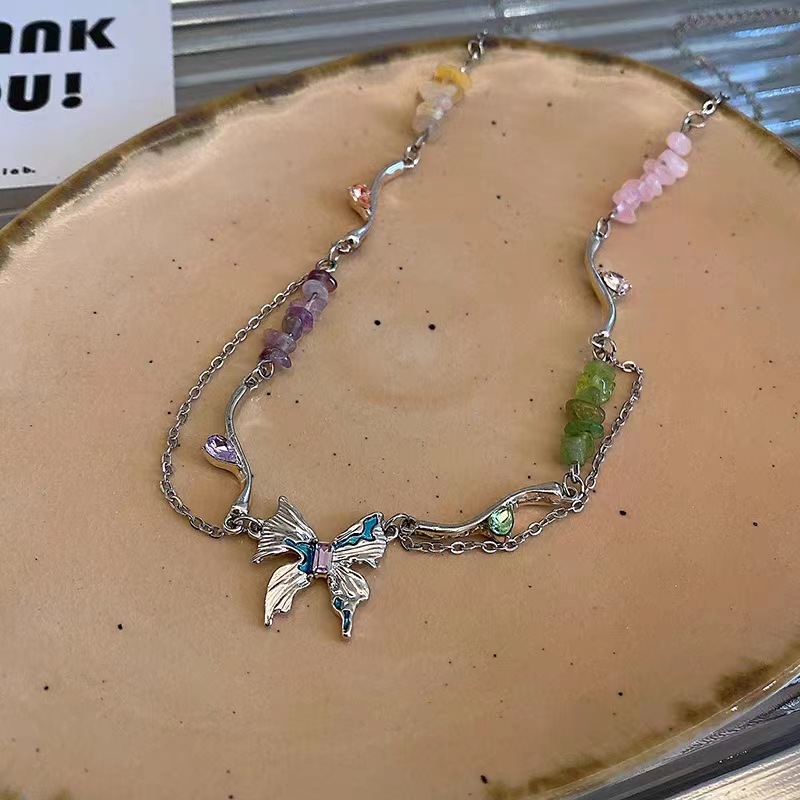 Nhiều Màu Sắc Đá Tự Nhiên Chất Lỏng Vòng Cổ Bướm Nữ Ins Hip-Hop Hot Girl Phụ Kiện Xương Đòn Dây Chuyền Hốc Thiết Kế Cảm Giác Vòng Cổ