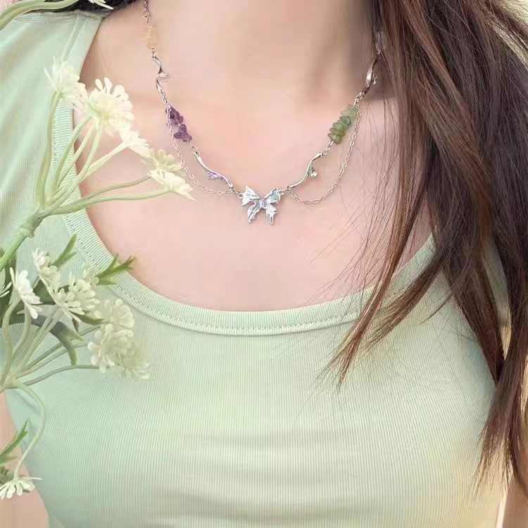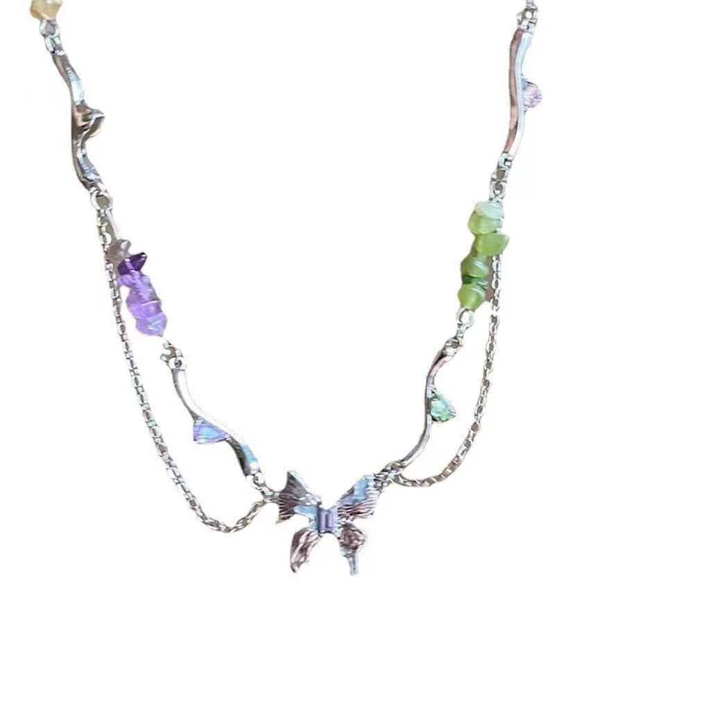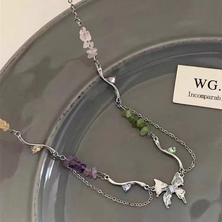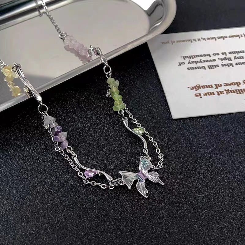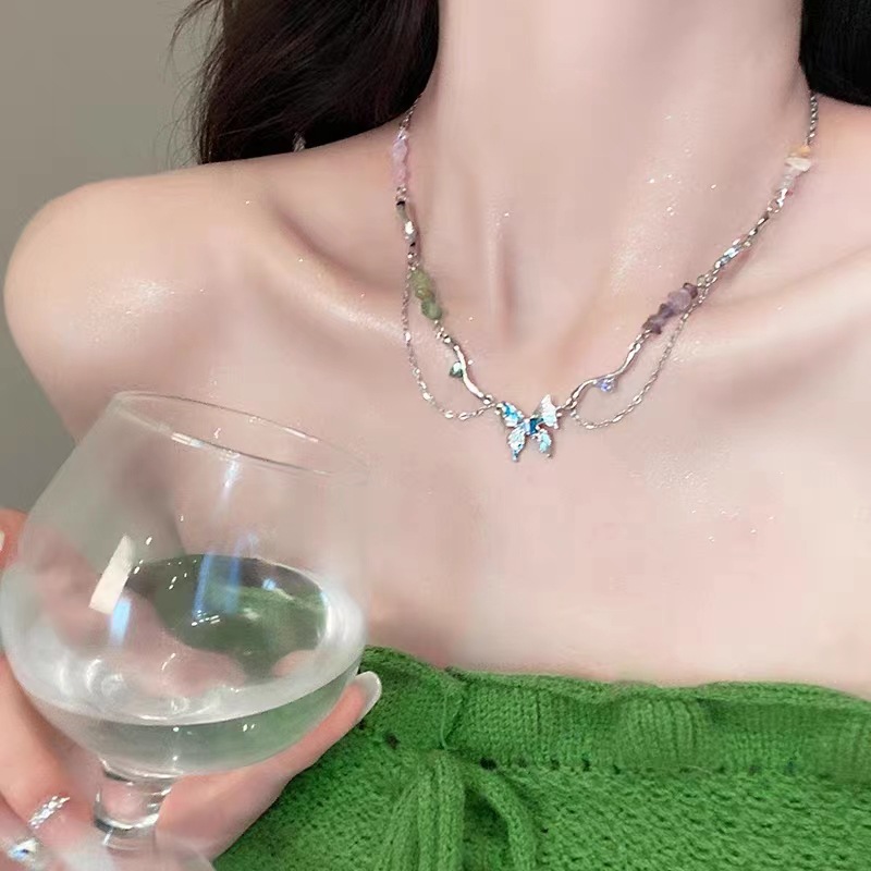 Nhiều Màu Sắc Đá Tự Nhiên Chất Lỏng Vòng Cổ Bướm Nữ Ins Hip-Hop Hot Girl Phụ Kiện Xương Đòn Dây Chuyền Hốc Thiết Kế Cảm Giác Vòng Cổ