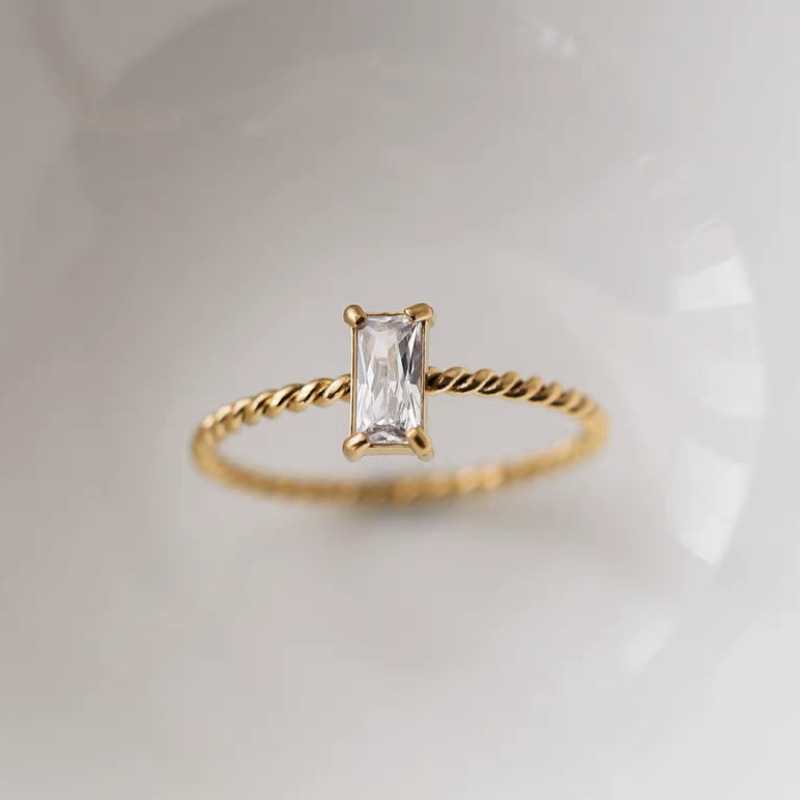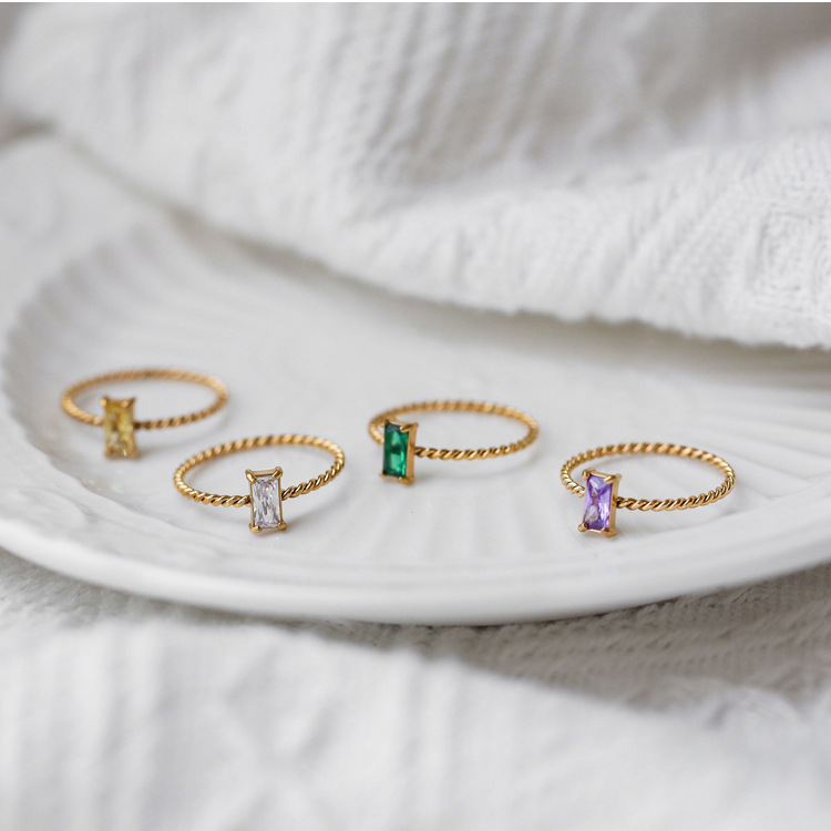 Nhiều màu sắc kiểu Âu Mỹ mạ vàng 18K tinh xảo màu xoắn vuông nhẫn kim cương nữ thời trang cá tính nhẫn thép titan