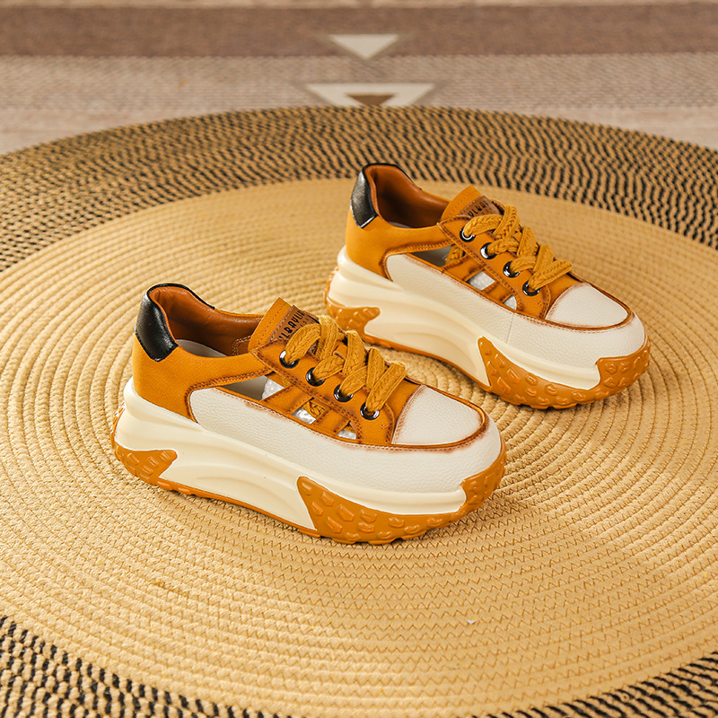 | 小个子休闲鞋女2023年夏季新款百搭厚底镂空老爹鞋时尚复古运动鞋 |