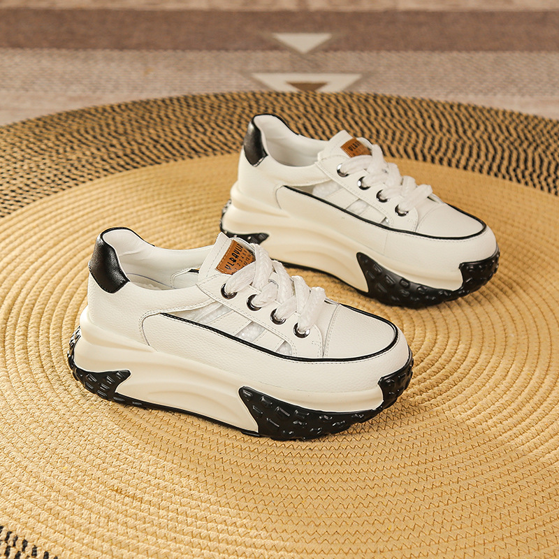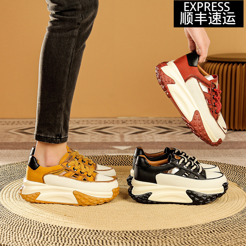 | 真皮爆款老爹鞋女2023年春季新款时尚百搭厚底松糕休闲女生运动鞋 |