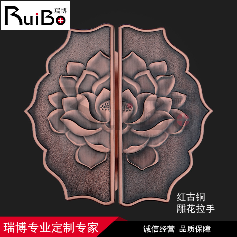 Nhôm tấm bán nguyệt chạm khắc hoa văn tay nắm chống cổ tay nắm cửa khách sạn tay nắm sang trọng đồng đỏ tay nắm lớn