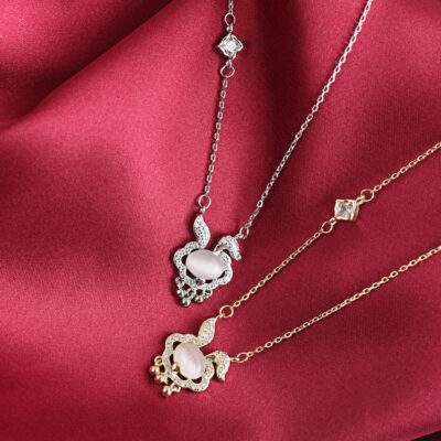 Như Ý Khóa Vòng Cổ Thỏ Ánh Sáng Nữ Sang Trọng Thiết Kế Hốc Vòng Cổ Đá Opal Năm Bản Địa Bình An Khóa Xương Đòn Dây Chuyền Xu Hướng