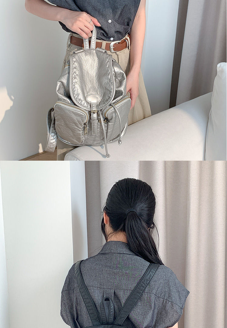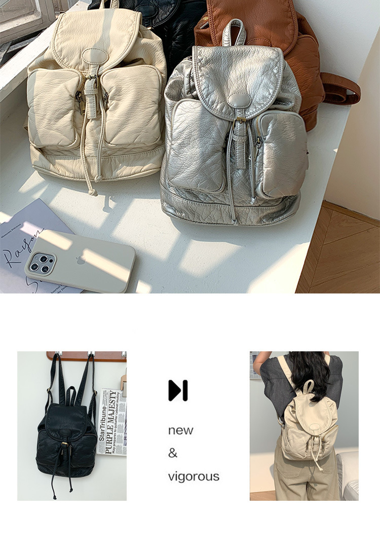 Niche Bạc Ba Lô Bé Gái Ba Lô Nhỏ Nước Rửa Da Ins Ba Lô Schoolbag Học Sinh Ba Lô Retro Nữ