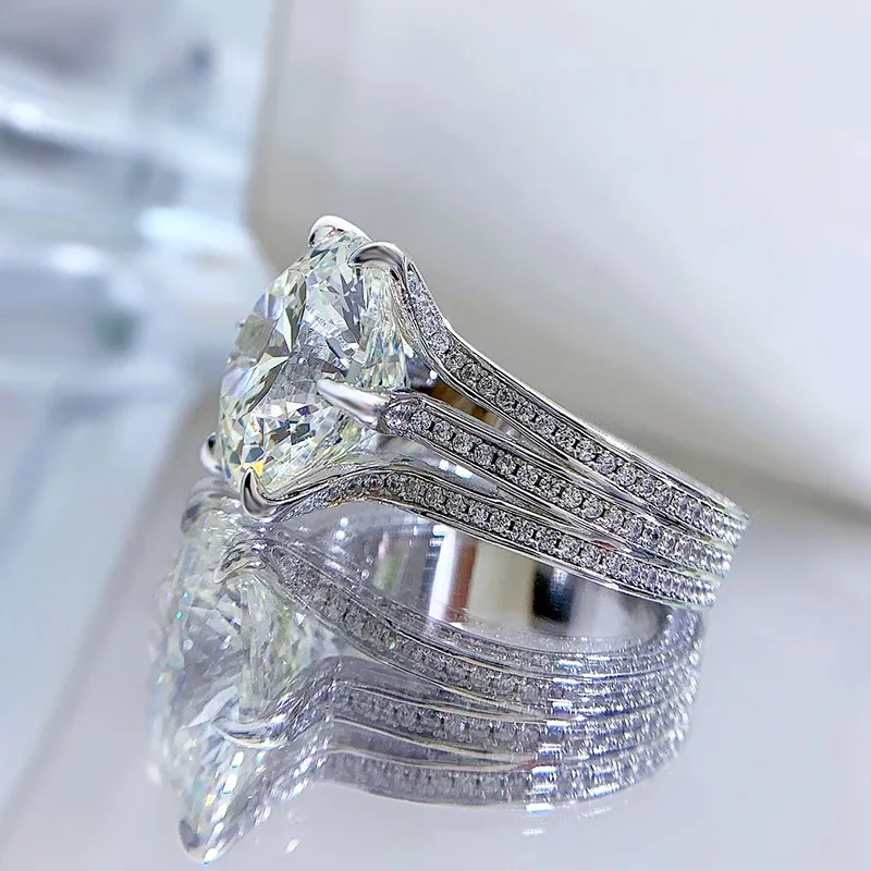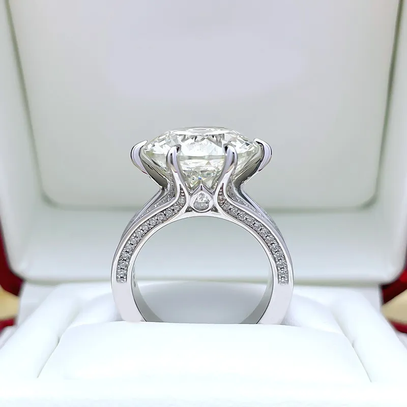 NKHOG Sparkling 10 Carat Moissanite Ring For Women 925 Sterling Silver Plated Pt950 Colorless Diamond Wedding Band Rings Jewelry_x000D_
